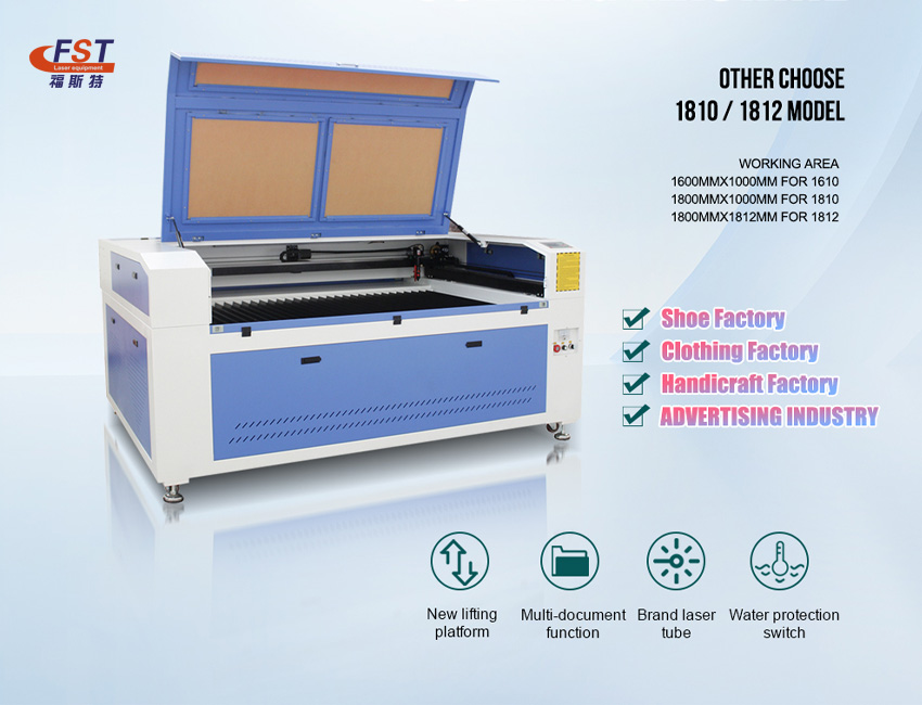 Foster laser CO2 Laser Engraving Machine with different working area,laser power or working table, which application is engraving and cutting on acrylic, wood, fabric, cloth, leather, rubber plate, PVC, paper and other kinds of non metal materials.1610 laser cutting machine are widely used in advertisement,decoration, arts and crafts, electronic and electric appliances, garment industry fabric leather cut and other industries.