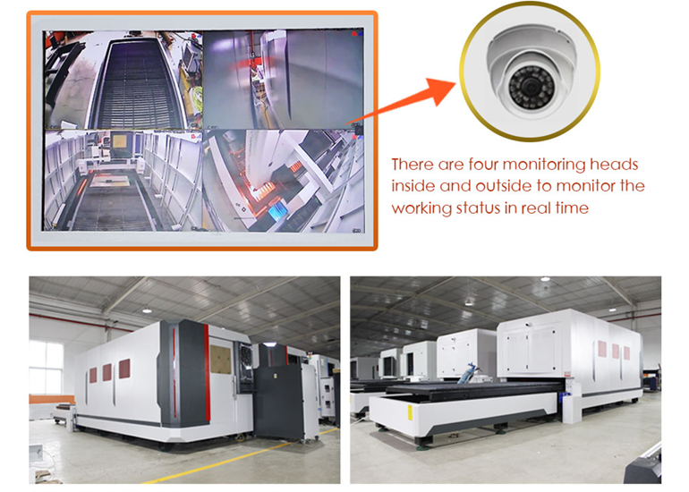 is a fully enclosed metal sheet fiber laser cutting machine with exchange platform. Equipped with fiber laser source of power from 1.5kw to 30kw, it is able to cut up to 25mm metal sheet.And the working area is from 3000mm*1500mm to 6000mm×2500mm. The fully-protected closed design ensures the safety of processing.It has the advantages of fast cutting speed, good cutting effect,low operating cost, and good stable processing ability. This cnc laser cutter is equipped with an international main stream transmission drive system, new generation of welding machine bed and aluminum beams, new designed air circuit control module,new optimized control system and etc., The laser cutting machine is equipped with a new advanced fiber laser and laser cutting head,with superior comprehensive performance.