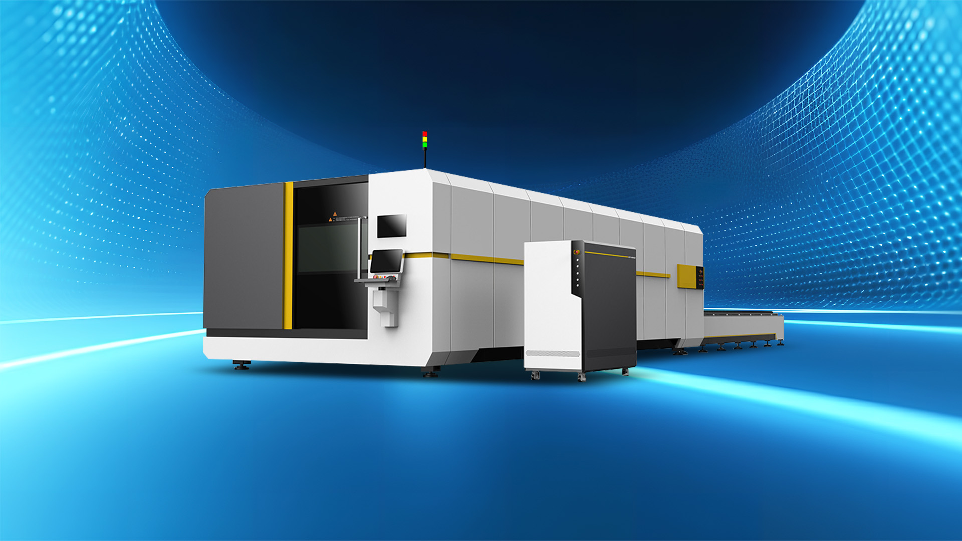 The large-enclosed optical fiber cutting machine adopts a fully automatic feeding system, with a fully-enclosed safety design,Allowing the entire equipment to achieve stable cutting under high-power and high-speed operation, endowing the equipment with a higher standard product positioning.