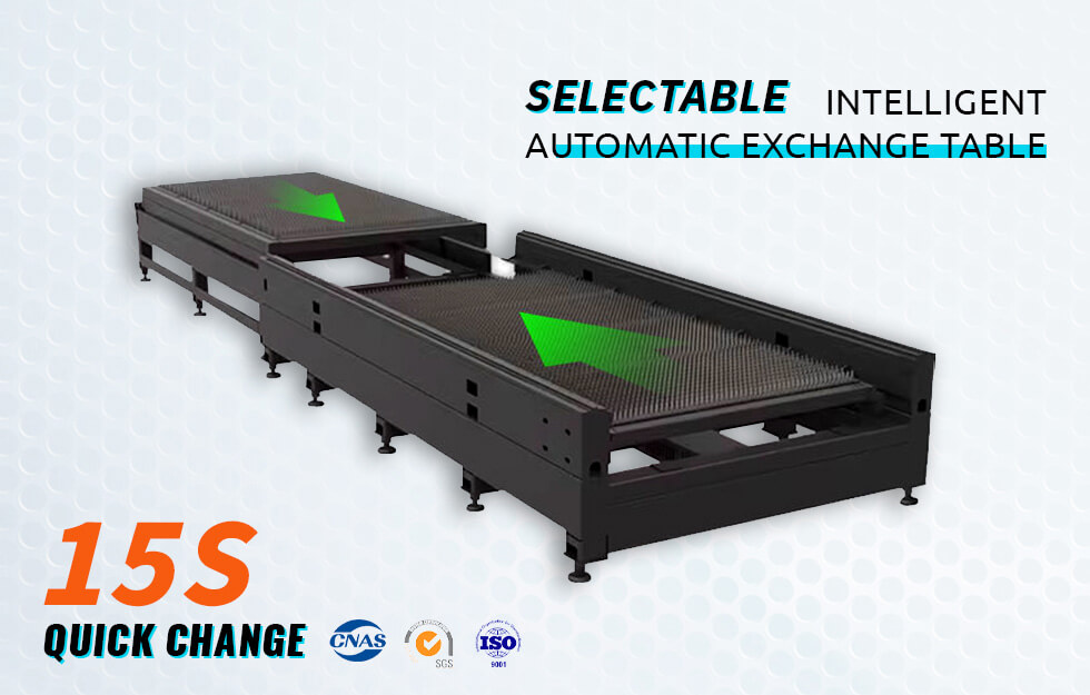 is a fully enclosed metal sheet fiber laser cutting machine with exchange platform. Equipped with fiber laser source of power from 1.5kw to 30kw, it is able to cut up to 25mm metal sheet.And the working area is from 3000mm*1500mm to 6000mm×2500mm. The fully-protected closed design ensures the safety of processing.It has the advantages of fast cutting speed, good cutting effect,low operating cost, and good stable processing ability. This cnc laser cutter is equipped with an international main stream transmission drive system, new generation of welding machine bed and aluminum beams, new designed air circuit control module,new optimized control system and etc., The laser cutting machine is equipped with a new advanced fiber laser and laser cutting head,with superior comprehensive performance.