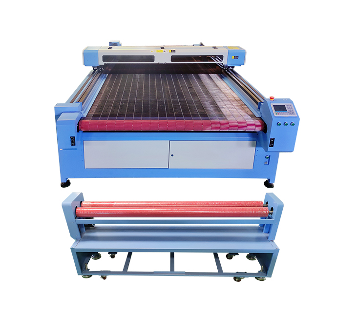 The laser cutter with auto feeding system fixed with aselective rolling automatic feeding system, which make the whole cloth processing steps finish in one time.