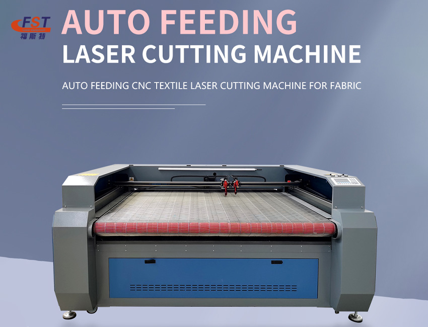 Auto feeding laser cutting engraving machine for fabric clothing embroidery.