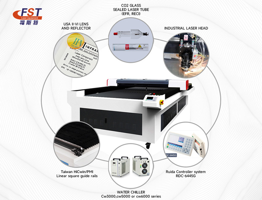 Foster laser CO2 Laser Engraving Machine with different working area,laser power or working table, which application is engraving and cutting on acrylic, wood, fabric, cloth, leather, rubber plate, PVC, paper and other kinds of non metal materials.1325 laser cutting machine are widely used in advertisement,decoration, arts and crafts, electronic and electric appliances, garment industry fabric leather cut and other industries.